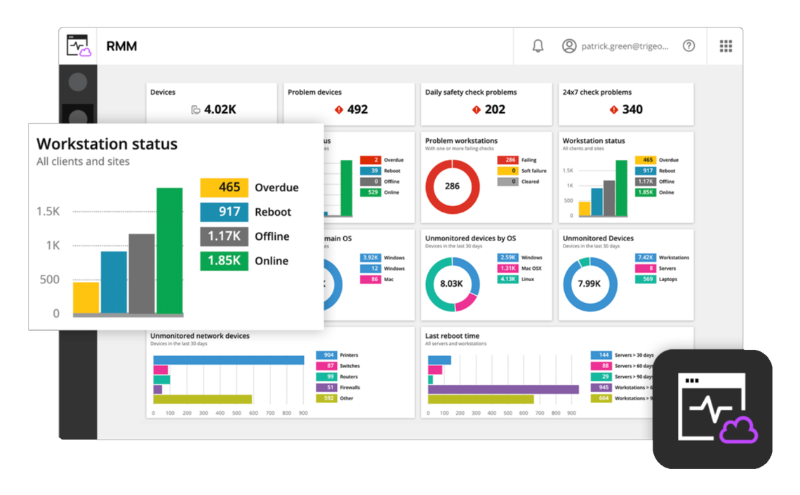 Remote monitoring and management (RMM) allows for supervision and control over IT systems by our support technicians, to administer patches, install updates and software, and much more – all on a single, centralised dashboard.